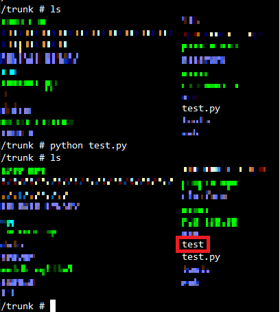 $ python test.py 를 샐행한 후의 test 파일이 생성된 것을 확인하실 수 있습니다.